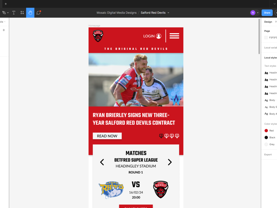 Taking cues from leading football clubs such as Manchester City, Barcelona, and AC Milan, the goal was to bring a sense of sophistication and user-first design to the Salford Red Devils’ new website.
